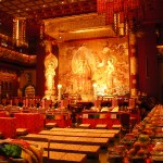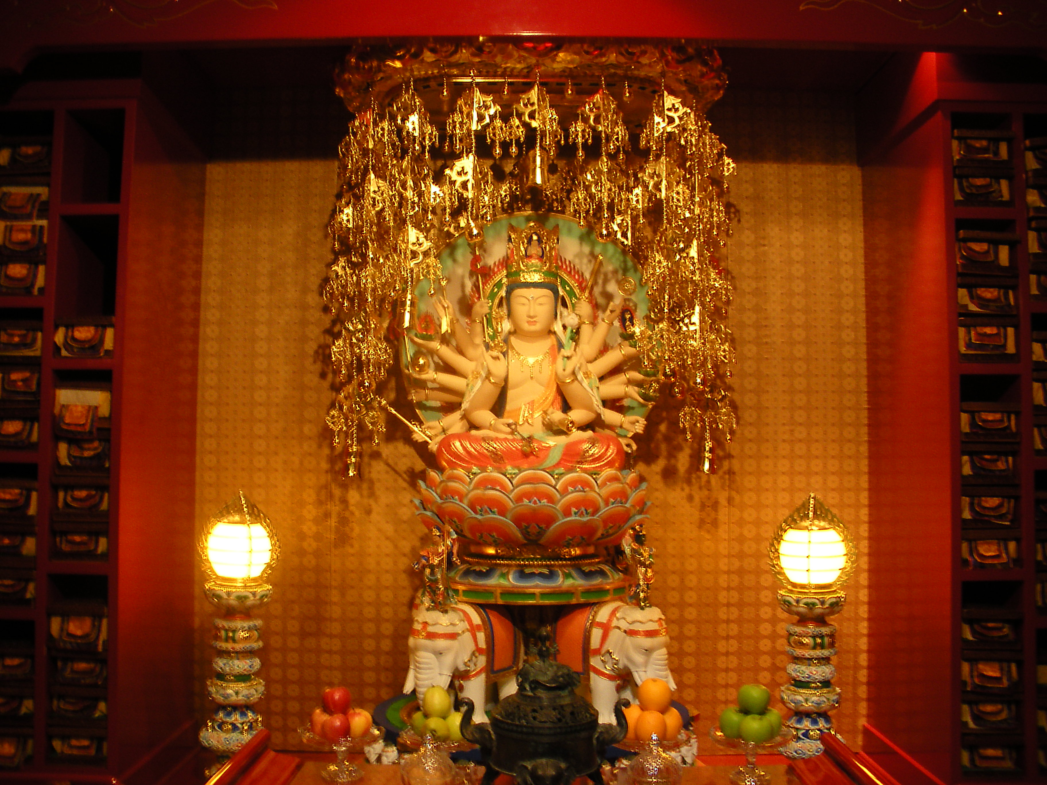 It’s very ornate inside, and the main hall is lined with small statues of One Hundred Buddhas and tables holding offerings that have been made to the Three Jewels: Buddha (the Enlightened One), Dharma (the Teaching), and Sangha (the Spiritual Community). Upstairs, there was a beautiful museum telling the story of the life of Buddha and displaying Buddhist icons from all over Asia.