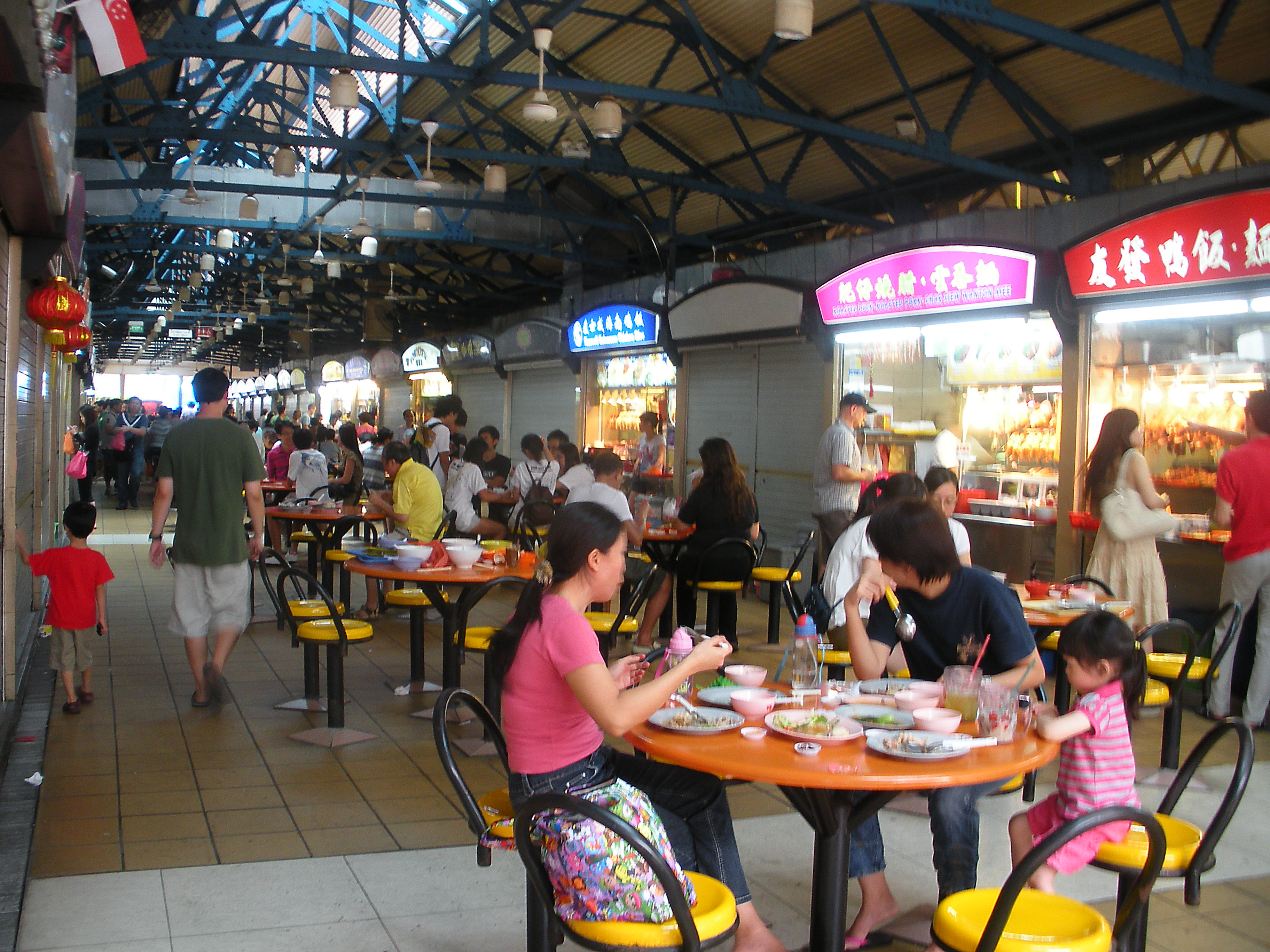 My technique in food courts and hawker centers is to wander the rows of food stalls, looking for the ones with long lines and counting on those to have the best food. It’s tough to choose with so many options (poor me, right?), but this day I settled on a fried rice and noodle stand, and saw a table for six with only two people at it not far away. I asked if I could take a seat, and left my tissues there – it helps that everyone speaks English!
