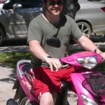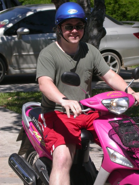 I still remember our effort in Thailand that started with Grant steering up and down the driveway of our hotel and ended with us hailing a cab. We do have a moped at home, and I’m sure that given the time and inclination, Grant would be an excellent motorbike driver. The place to learn is NOT on the streets of Cambodia.