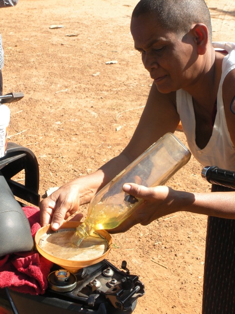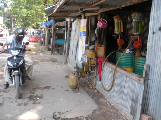 Luckily, there are gas stations everywhere, and they are a bit more informal that you might be used to. All you need is a wooden rack, and funnel, and a few bottles filled with gasoline. Soda bottles or Johnny Walker bottles were definitely preferred, and you pass one of these ad hoc gas stations every few minutes.