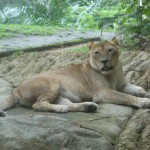 Singapore Zoo is a wild place to be. Its meandering footpaths allow you to happen upon the animals in their “enclosures”, which often appear more open than enclosed. Next to the tiger area was a painted line showing the range of a tiger’s leap. The dueling visuals of this factual representation and the big tiger pacing and staring menacingly at us was a little unsettling. I was almost convinced he could have leapt the moat and eaten us all, and that he wanted to.